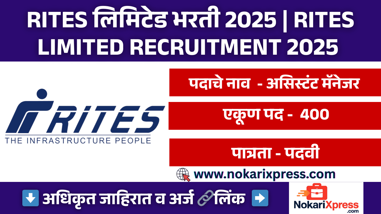 RITES लिमिटेड भरती 2025 – पदवीधरांसाठी सुवर्णसंधी! | RITES LIMITED RECRUITMENT 2025