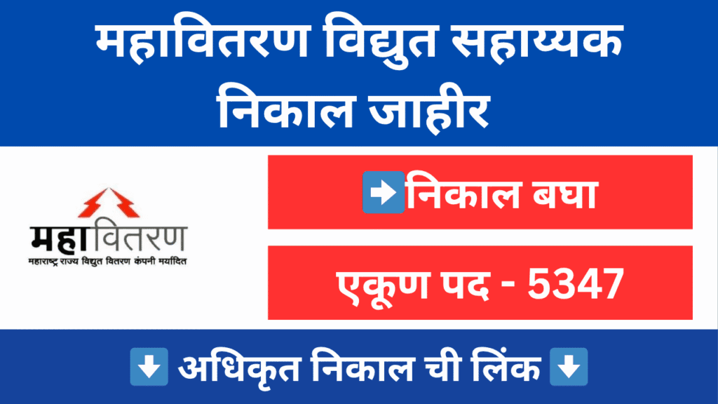 महावितरण विद्युत सहाय्यक निकाल जाहीर