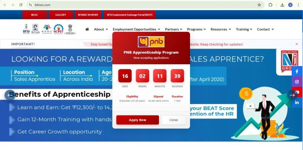 • ‘Employment Opportunities’ → ‘Apprenticeship Opportunities’ → ‘Punjab National Bank’ सिलेक्ट करा